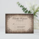 Vintage Swirl Ram Barn Wood Land Horseshoe Bröllop OSA Cards med ett ornat vintage antique swirl ram runt bröllop svarskort på en bakgrund av nödlidande bruna lingved. Den andra sidan har dubblor för ett westernt tema i land. Lägg bara till din egen svarskortsinformation till den här mallen: rustik OSA kort, lada wood OSA kort, vintage ram OSA kort, vintage, OSA kort, svarskort, svarskort, hästskon, hästskon, dubbla, länderna westernare