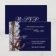 Den har ett land-rustiskt tryckt snöre och ett trådband på sidan med två hästskor i grund hörnet. Bakgrunden är ett marinblått färg. Perfekt för land eller bröllop. Lägg bara till ditt OSA-datum på kortet. Tvillingbågen och snöre är bara utskrivna. Det är inte snöre eller tråd.