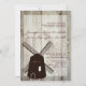 Beställning 100 Inbjudningar - Spara 40 % En enkel inbjudan till landsbyggsbröllop med en nedtryckt lada-bakgrund med en dyster bakgrund med stil-kvarn i norr vid inbjudan. Baksidan av inbjudan har också Nederländska stil kvarn. Dessa inbjudningar är perfekt för en utomhusbostad land stil bröllop, bröllop, bröllop på landsbygden eller cowboybröllop.