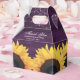 Anpassningsbar Rustic lila bröllopsbox med lila träbakgrund med solblommor. Anpassa enkelt den här lila blommigt-förmånslådan med din händelseinformation.
