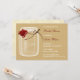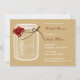 röd ros på en Rustic, shabby chic land Mason burk på FAUX-baksmällande Inbjudningskort i Möhippan. Elegant och snyggt för ett landsbyggsbröllop eller en underbar för en gård i bröllop också för utomhusbruk i bröllop.