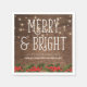 Rustic helgdag christmas party-middagsservetter med varm bakgrund av trä, ljus, en blommigt av julafton, ord, MERRY & BRIGHT, säsonhälsningar, din familj namn och året om.