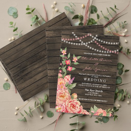 Barn wood Peony Rustic Wedding Invitations SetDesignad av Maria G