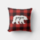 Underbart tillägg till Julfestens dekorator eller för hela året i loggstugan, överensstämmer dekorativ kudde med våra andra inbjudningar och andra tillbehör till helgdag av gingham tartan mönster. Utformningen har en röd och svart stripe mönster bakom en vit björn som har svart text "Pappa" på framsidan. Baksidan har samma mönster med tre vita träd på baksidan.