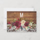 Elegant, chic och rustik land Marsala burgundröd och elfenbensvit blommigt arrangemang och vit snöre på träplankor, Spara-datum-bröllop-kort. Denna klassiska och sofistikerade utformning är perfekt för det trendig och det snyggt som gifter sig. Anpassa med ditt eget meddelande på framsidan och en anpassad inledande monogram på baksidan. All fotoutskriftsdesign.