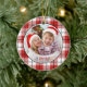Den här julprydnaden från Rustic Land Red White & Black Flanals Mönster är en perfekt gåva till vilken familjemedlem som helst. Den röda texten "2018" kan ändras till valfritt år och på baksidan kan den röda texten "glad helg" ändras till det hälsning du föredrar. Alla har sin favorit tartan gingham mönster. Lägg till ditt eget foto för att ersätta det söta syskonen med jultomten för att fylla i din egen personlig. Underbar för baby i julas, håll reda på varje helgdag som går för föräldrar eller mormor och farfar.