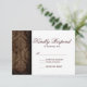 Rustic Land Ro Barn Wood Bröllop OSA Cards med en utmattad dammkonstruktion på mörk bruna lingved. På ena sidan finns två rosor i vita konturteckningar i hörnen: rustik, land, vintage, antika, damm, elegant som fallit, nöt OSA kort, laduvirke, barrträ, trä, bruna, land westerna OSA kort, rosor, ro, blommigt, ,