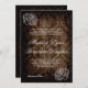 Rustic Land Barn Wood Wedding Bejourges med två ro i hörnen i skisser av vita konturteckningar på en mörk av bruna lingerbakgrund med en avfettad dammformad utformning för elegantens skull. De här bröllopsinbjudningarna är perfekt för landsbyggsbröllop och bröllop.