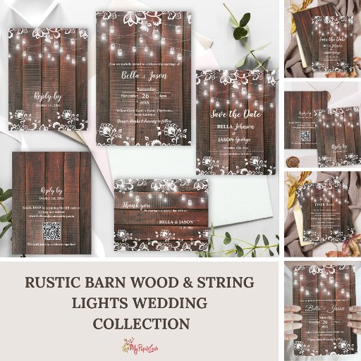 Rustic Wood & White Lace Floral Wedding SuiteDesignad av Mypaperlove Designs