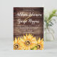 Inbjudan till elegant bröllop till sommaren bröllop! Vattenfärgade solblommor vid grund på en lada med träbakgrund. Använda det här mallkortet för ditt land-tema bröllop. Anpassa den här produkten genom att lägga till din egen bröllop-information. Snygg blommigt för gult.