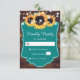 Personlig Träet land och solroskort med solblommor och ljus på en lada bröllop OSA. Anpassa enkelt den här onlinen för teal och solrosa OSA kort. Matchande artiklar som är tillgängliga för att komplettera dessa söta teal-bröllop OSA.