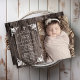 Sötare än rustik land faux wood flicka, enkelt foto Baptism-meddelande/inbjudan med vintage hörnförnelsens motiv. Anpassa med din baby bild, namn och baptism. Design efter Helgdag - Utformning (reserverade höger).