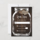 Personlig Rustic land och Mason burk bröllop OSA-kort som innehåller en mason burk med två brännhjärtan mot en rustik träbakgrund. Anpassa enkelt onlinen. Matchande artiklar som är tillgängliga för att komplettera de här söta bröllopen OSA för rustik mason burk.
