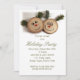Jul i stugan! Släng dina gäster före party med de här inbjudningarna till anpassadets helgdag eller julfest. Den här utformningen har två vackra träfolk med gräs öron och röda näsor. Underbar för det mycket populära land och det mycket populära temat. Gör ett underbart inbjudan för ett företag, ett företag, en kyrka, en församling eller för någon som kärlek ett helgdag i land!