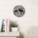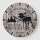 En strålande, unik personlig av typen en-av-ett-typ-modell har en fin träbakgrund med gräs träd, en älg och ord, "WILLIAMSONS LIVING ON MOUNTAIN TIME EST. 20XX" i svart typografi. Anpassa den här klockan genom att lägga till din egen personliga information. Gör ett underbart bröllop, en årsdag eller en gåva till husuppvärmningen. Klicka på "Anpassa den här mallen" om du vill ändra namn och typsnitt om du vill skapa en unik design av ett slag. Vilken fin tillbehör till vardagsrummet, sovrummet eller familjerummet. Om du behöver hjälp med anpassning kan du skicka e-post till dig själv @gmail.com. Tack för att du stannar på www.zazzle.com/WhisperingPines. ©Karen HallA rustic