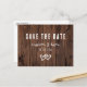Anpassningsbarnas landsbyggsbröllop sparar datumkorten som innehåller en lada med träbakgrund. Anpassa enkelt de här roliga texturerade vykorten bröllop spara datum med dina bröllop-uppgifter.