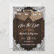 Komplettera bröllopsfesten land eller Lada med detta elegant bröllop, spara datumet med två brännhjärtor på en lada med baksida av trä, med strängen ljus och vit blommigt snöre.