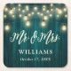 Rustic Land Wood String Ljus Teal Bröllop Underlägg Papper Kvadrat