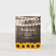 Rustic bröllop tackar dig för att du har kort med land lada mörk ekfat bakgrund, ljus, solrosor med dubbla vingar, solblommor med gyllene gulter, ditt monogram och en modern tackmall.