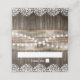 Gypsophila land-chicen placerar kort med land lada barrel-bakgrund, tvinklingssträng ljus, baby utandningsblommor och initialer.