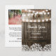 Personlig bröllop tack för att du har ett platt kort med land lada-ekfat, tvillinkle sträng ljus, baby utandblommor, ditt monogram, ett foto från bröllop och en tackmall som är lätt att anpassa.