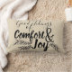 Rustic helgdag-kuddar med frasen "Bra Tidings of Comfort & Joy" svart över beige.