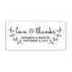 Rustic Laurels Wedding Favor Rubber Frimärke, med hand plockade rustiska lagrar med ord "kärlek & tack" i det moderna kalligrafteckensnittet stil och detaljer i det moderna sans serif font stil. Perfekt för bröllop, babydusch, födelsedagsfest, bachelorette-fest och alla särskilda tillfällen.