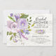 Blommigt inbjudningskort för möhippan med vackra handmålade lila lavender-blommor. Vänd över inbjudan för att se en koordinering för en speciellare beröring i extra.