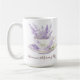 Ta med dig elegans och lugn till din dagliga rutin med den här personlig lavender tekopp mugg. Med en delikat vattenfärgsillustration av en vintage tekopp fylld med färsk lavender, kombinerar den här designen rustik charm med tidlös skönhet. Lägg till din egen namn eller fras för en tankfull anpassningsbar - perfekt för kaffe, te eller som en gåva till trädgårdsälskare, lavender fläkt och alla som uppskattar enkla, lugnande ögonblick.
