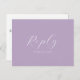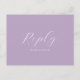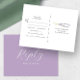Det här OSA vykortet är ett verkligt uttryck för ett botaniskt romantik. Det visar minimalistiska sprickor av lavenderblommor. Med detta vykort får gästerna ett särskilt utrymme att bekräfta sin närvaro och sitt val av måltid. Ord "Svara" anges i elegantens skripttypografi över en matchande lila-bakgrund. Idealiskt för trädgårdsbröllop är biet ett testamente till Victoria Grigaliunas unika artiké från Do tell A Belle. Upptäck matchande kontorsmaterial och mer på www.zazzle.com/dotellabelle.
