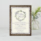 Elegant och romantisk andningsdesign för lavendel blommigt med mörk brunt, rustiskt lingträ och skalopad snöre-inramning av elfenbensbakgrunden. Denna unika karaktär och vintage inspirerade bröllopsinbjudan är söt som det kan vara.