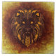 Ett geometriskt stamhuvud av en lejon med ett rustiskt brunt fläkt