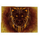 Ett geometriskt stamhuvud av en lejon med ett rustiskt brunt fläkt