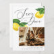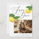 Lägg märke till din speciella dag i stil med den här citrongroven Spara datumkortet, blanda rustik charm med modern elegans. Den handmålade färgscitronen och lush grönt löv ger den färska andan i en Medelhavsfruktträdgård, medan det stora "Save the Date"-skriptet tillför en romantisk, tidlös beröring. Perfekt för par som är värd för sommarens bröllop, citrusfruktinspirerade firande, Amalfi Kusten, eller rustiska vinodlingar. Detta kort anger tonen för en glatt händelse som omges av naturen. Kombinationen av ekologiska fruktillustrationer och modern typografi gör den både till elegant och till inbjudan. Oavsett om du planerar en havsbottenceremoni, en trädgårdssamling på landsbygden eller en levande trädgård party, fångar citrus Save the Date själen av värme, romantik och firande. Tillgängligt som både ett tryckt kort och en digital nedladdning.
