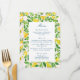 Den här bröllopsinbjudan är vackert designad med vattenfärgade illustrationer av färska citroner och löv. Vattenfärgens blandade färg skapar en elegant- och kalkeringsbakgrund för designsviten. Den typsnitt som används för texten är elegant och förfinad, vilket gör utformningen mer sofistikerad. Med citron- och löv-formgivningen kan man på ett perfekt sätt fånga det väsentliga i en sommar-bröllop i Medelhavet-kusten, medan elegant typsnitt upphöjer svitens totala estetik.