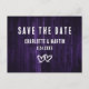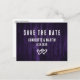 Det här enkla bröllop spara datum-vykortet är idealiskt för en lila rustik land/lada-bröllopsfest.