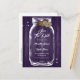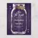 Personlig lila Rustic Mason burk bröllop spara datum vykort med mynningen burk och brännhjärtan mot en lingbakgrund som är försedd med skinklig ljus. Anpassa enkelt onlinen. Matchningsartiklar som är tillgängliga för att komplettera dessa lila bröllop spara datum.