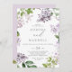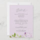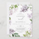 Den här roliga lilaken i en bröllopsinbjudan är perfekt för vår eller sommar bröllop. Den romantiska och elegant blommigten har vattenfärgsblommor av vildblommor i lila med en boho land trädgårdskåra. Spara papper genom att inkludera uppgifterna på baksidan av bröllopsinbjudan i stället för på ett separat djurutrymmeskort. Ta även med OSA-informationen om din gäst svarar elektroniskt (valfritt).