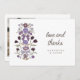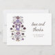 Tack för det robusta temat bröllop, ett kort med hand plockade som illustrerar lilaskt band med blommor.