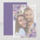 Modern och trendig, den här söt ritningen av det rustiska stil-bröllop spara datum-kortet har en rustik, lilac lavender-blommigtens vattenfärgdesign, med en toppen design av lilac-, lavender- och dammiga söt-blommor, handskrivet manustypografi och faux rosa-stoft, på ett faux vellum-överlägg som alla skrivs över ditt favoritfoto. En del av en matchande bröllop-svit. Kontaktdesigner för matchande produkter. Inbjudningskort för Elegant av upphovsrätt, alla höger reserverade.