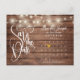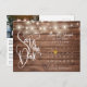 Den här spara-till-datum-snyggten-kortet innehåller söt sträng ljus, en kalender och ett chic-kärlek-hjärta som belyser ditt speciella datum med en bakgrund av rustik ved. Den omvända funktionen har ditt speciella foto och ytterligare spara-the-date-information, inklusive bröllop webbplats QR-kod, med din returadress och ditt utrymme för adress. Designad av Thisisnotme©