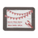 En bröllop spara datum-magnet med en illustration av rödtandskinka och en hummer över en lada-bakgrund. Anpassa texten.