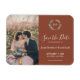 Eleganten har en monogrammad vattenfärgad botanisk bröllop spara datum-magnet med ett eget foto. För vår, sommar, fall eller vinterbröllop. Grönt gren vattenfärgsdesign. Du kan enkelt lägga till ett eget foto för att göra det mycket personligt och unikt och lägga till en egen text.