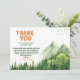 Säg "tack" i stil med det här charmerande, rytmatiska tackkortet! Med en lush-vattenfärgsskog och bergsdesign på framsidan, plus utrymme på baksidan om du vill ha ett foto av din lilla äventyrare i personligen. Perfekt för att dela tacksamhet efter en första födelsedagsfest med en roligt, outdoorsy-tvist!