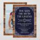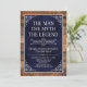 Han är mannen, myten! Hans liv har varit en fantastisk och det är dags att fira hans arv och hans arv. Den här orustiga träuppbackade texturerade marinblått papper med vit typ och vita rullade hörn överraskar 75:e Birthday-inbjudan är perfekt för att bjuda in vänner och familj att gå med dig hedra och fira denna otroliga milstolpe-födelsedag! Om du vill visa dina unika inbjudningar klickar du på "Anpassa den här mallen" och skriver in informationen. Det är lätt toppen!