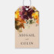 Inslag: blommigtar med vibrerande fall mot blekens persikobakgrund. Klassiskt serif typsnitt. Färg: Marsala, orange, bränd sienna, plommon, grönt, persika. Teman: Rustik, fall, höst, boho, bohemian, land, vintage. Samling: Rustic Marsala Burnt Orange Fall Wand Bröllop Samling. Produkttyp: Rektangel med favorittaggar