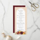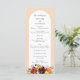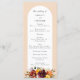 Inslag: blommigtar med vibrerande fall mot blekens persikobakgrund. Klassiskt serif typsnitt. Färg: Marsala, orange, bränd sienna, plommon, grönt, persika. Teman: Rustik, fall, höst, boho, bohemian, land, vintage. Samling: Rustic Marsala Burnt Orange Fall Wand Bröllop Samling. Produkttyp: Program