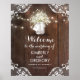Barn wood, snöre, ljus och Mason burk med baby utandningsblommor bröllop välkomsttecken poster