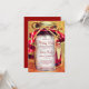 En rustisk julfest i land med en mason burk med rött band och rustik Santa märkre hängande på sidan av burk. Lägg till din egen inbjudningstext till julfesten i den här mallen. Om du vill lägga till eller ta bort linjer av använda klickar du på "Anpassa". Baksidan av inbjudan är röd.