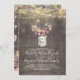Vintagens inbjudan till rustik förlovningsfest innehåller Mauve och guld blommigt Mason burk, sträng av ljus och gammal lada-träbakgrund.